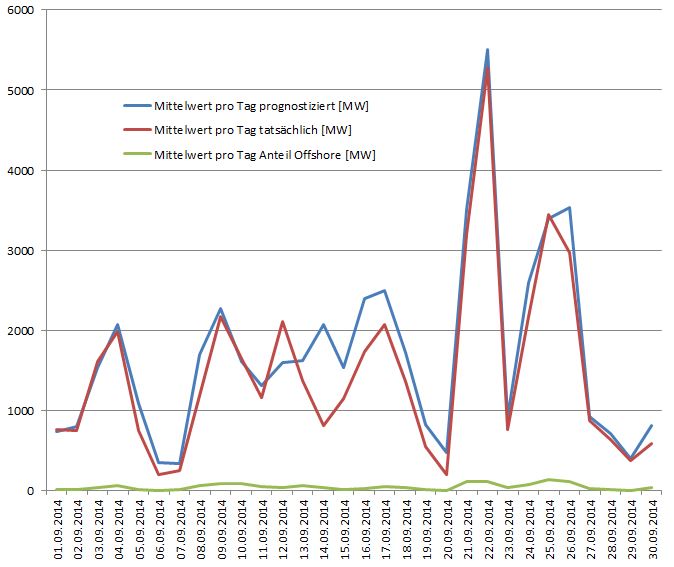 Regelzone der TenneT TSO GmbH im Monat September 2014: